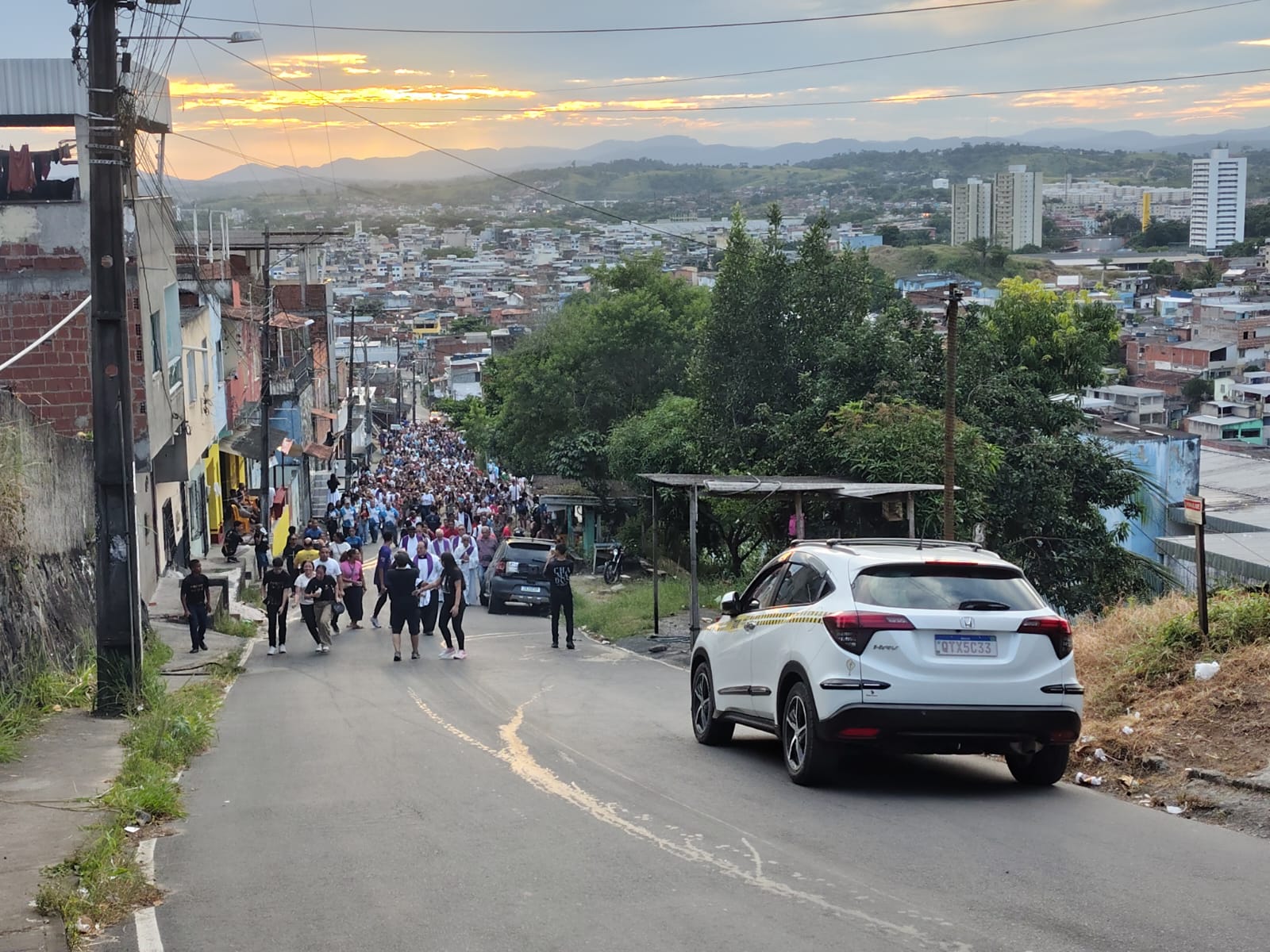 A caminhada teve início na Paróquia Santa Maria Goretti, localizada no bairro Mangabinha, em Itabuna, no sul da Bahia, e seguiu até a Paróquia Nossa Senhora da Piedade, no bairro Maria Pinheiro. Ao longo do percurso, crianças, jovens e idosos participaram ativamente do momento, que foi conduzido pelo padre Diego de Oliveira.