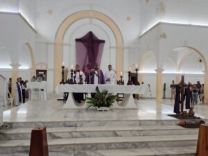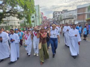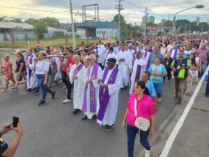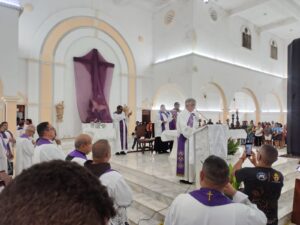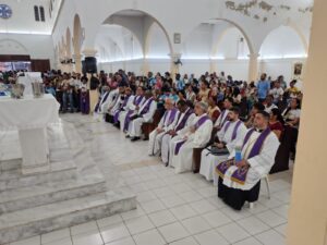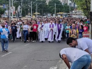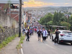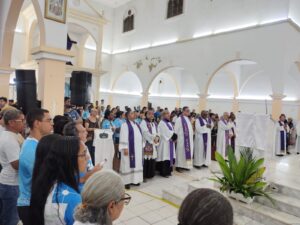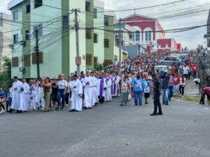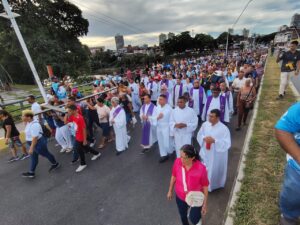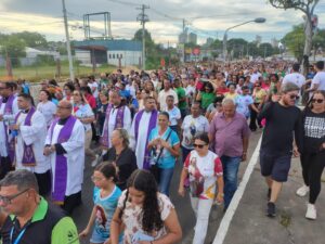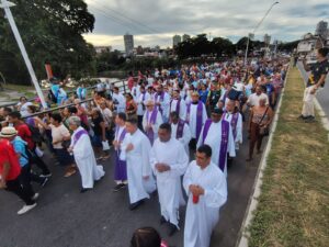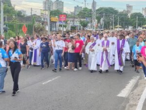 A Diocese de Itabuna, no sul da Bahia, promoveu hoje, 21 de março, a Caminhada Penitencial 2026, reunindo uma multidão de fiéis em um momento de fé, oração e reflexão durante o período quaresmal. A iniciativa contou com a participação das 16 paróquias da Forania Centro, além de centenas de comunidades, grupos, pastorais, movimentos, padres ,diáconos e seminaristas.A concentração teve início às 15h30, na Paróquia Santa Maria Goretti, no bairro Mangabinha. A saída ocorreu às 16h10, com expressiva presença de fiéis, acompanhados por dois mini trios que conduziram momentos de oração, cantos e louvores ao longo do percurso. Os participantes seguiram em caminhada até a Paróquia Nossa Senhora da Piedade, no bairro Maria Pinheiro. O trajeto teve aproximadamente cinco quilômetros de extensão e duração média de uma hora e meia.