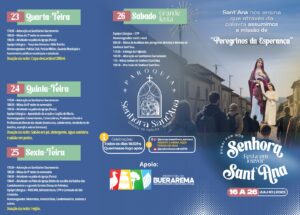 A Paróquia Senhora Sant’Ana, em Buerarema (BA), realiza entre os dias 16 e 26 de julho de 2025 a tradicional Festa em Louvor a Senhora Sant’Ana, padroeira da cidade. Com o tema central “Sant’Ana nos ensina que através da palavra assumimos a missão de Peregrinos da Esperança”, a celebração reúne fiéis, devotos e comunidades locais em um intenso novenário, marcado por momentos de fé, solidariedade e confraternização.