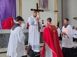 A celebração da Paixão do Senhor é composta por três partes principais: a Liturgia da Palavra, a Adoração da Cruz e o Rito da Comunhão. Em profundo silêncio, os fiéis participaram intensamente de cada momento, especialmente na adoração, quando se aproximaram do crucifixo para beijá-lo, em sinal de fé, gratidão e reconhecimento pelo sacrifício redentor de Cristo.