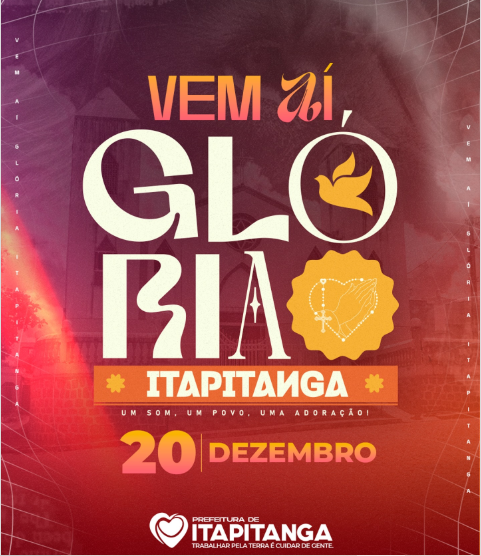 O município de Itapitanga, pertencente à Diocese de Ilhéus, divulgou oficialmente a identidade visual do evento Glória, que será realizado no dia 20 de dezembro. A iniciativa, promovida pela Prefeitura Municipal, propõe-se a reunir a comunidade em um momento de fé, música e celebração, destacando elementos da religiosidade local.