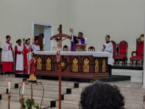 Neste sábado, 6 de dezembro, a Igreja Jubilar Catedral Diocesana de São José, em Itabuna, no sul da Bahia, acolheu com alegria o Jubileu Diocesano do Apostolado da Oração, com a participação de membros do Apostolado da Oração e do Movimento Eucarístico Jovem, MEJ. Em sintonia com o Ano Jubilar da Igreja, que traz como tema “Peregrinos da Esperança”, o encontro reuniu aproximadamente 500 fiéis vindos de diversas paróquias da Diocese de Itabuna, em um dia marcado pela fé, oração e comunhão.A programação teve início com a concentração na Praça Camacã, às 13h30. Às 15h, os fiéis seguiram em caminhada rumo à Igreja Jubilar, em um momento de profunda espiritualidade, marcado por cânticos, louvores e oração. Após a passagem pela Porta Santa, teve início a celebração da Santa Missa, às 15h30, presidida pelo diretor espiritual do Apostolado da Oração, padre Gilmar Oliveira Santos, sendo este o ponto culminante da peregrinação.