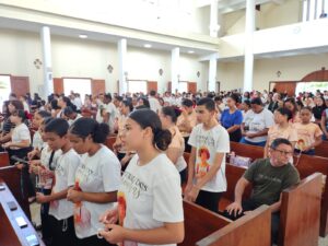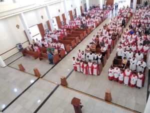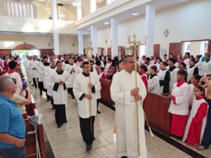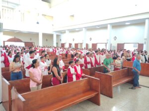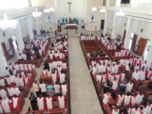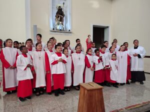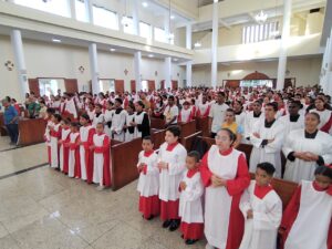 A igreja permaneceu lotada durante toda a celebração, marcada por expressões de fé, louvor e gratidão pela missão dos coroinhas nas comunidades.