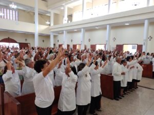 Ao final, padre Acássio informou que a Diocese de Itabuna possui atualmente 683 ministros extraordinários da Sagrada Comunhão, distribuídos em 35 paróquias nos 19 municípios que formam a diocese, organizados em três foranias: Forania Centro (331), Forania Norte (118) e Forania Sul (234).