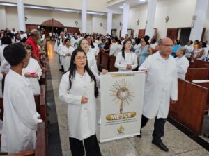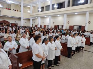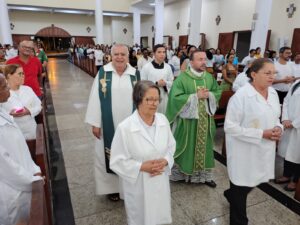 Durante a celebração, destacou-se a importância do ministério dos ministros extraordinários, lembrando que o serviço no altar não é motivo de engrandecimento pessoal, mas uma vocação ao serviço à semelhança de Cristo. A Eucaristia, conforme ensina o Catecismo da Igreja Católica, é a “fonte e o ápice de toda a vida cristã” (CIC 1324), tornando-se o centro da missão desses homens e mulheres que servem nas comunidades.