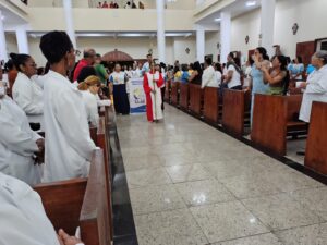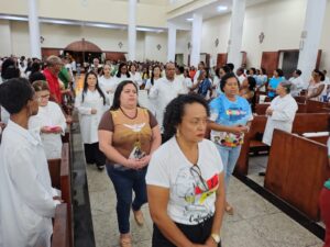 Na tarde deste sábado, 30 de agosto, às 15h30, a Catedral de São José, em Itabuna (BA), tornou-se o palco de um momento histórico para os Ministros Extraordinários da Comunhão Eucarística (MECE) e para os catequistas da Diocese de Itabuna, no sul da Bahia. A celebração marcou o Jubileu da Esperança, reunindo centenas de fiéis em um encontro de fé, gratidão e compromisso com a missão da Igreja.A acolhida dos participantes foi conduzida pelo padre Pedro Vinícius, que, erguendo a Cruz Peregrina Jubilar, adentrou a catedral acompanhado pela assembleia. O rito fez parte das celebrações do Ano Jubilar proclamado pelo Papa Francisco, com o tema “Peregrinos da Esperança”. O Santo Padre tem incentivado a vivência de uma esperança cristã ativa, expressa em gestos concretos de serviço e fraternidade.