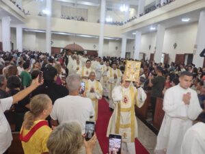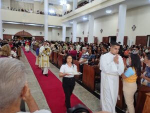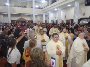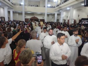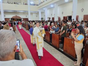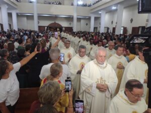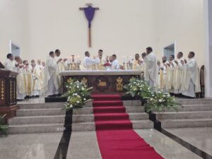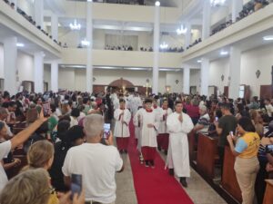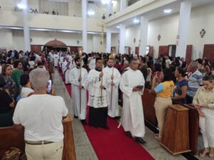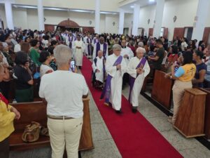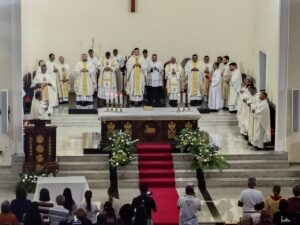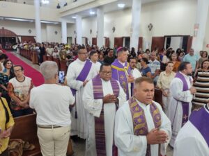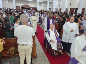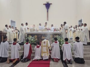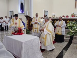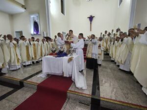A Diocese de Itabuna celebrou, na noite desta segunda-feira, 30 de março, às 19h, a Missa dos Santos Óleos na Catedral Diocesana de São José, em Itabuna, no sul da Bahia. A celebração foi presidida pelo bispo diocesano Dom Jailton de Oliveira Lino e contou com a participação de numerosos padres, diáconos permanentes e transitórios, seminaristas, religiosos, religiosas e um grande número de leigos e leigas. A catedral ficou completamente lotada, evidenciando a forte participação do povo de Deus neste momento central da Semana Santa.