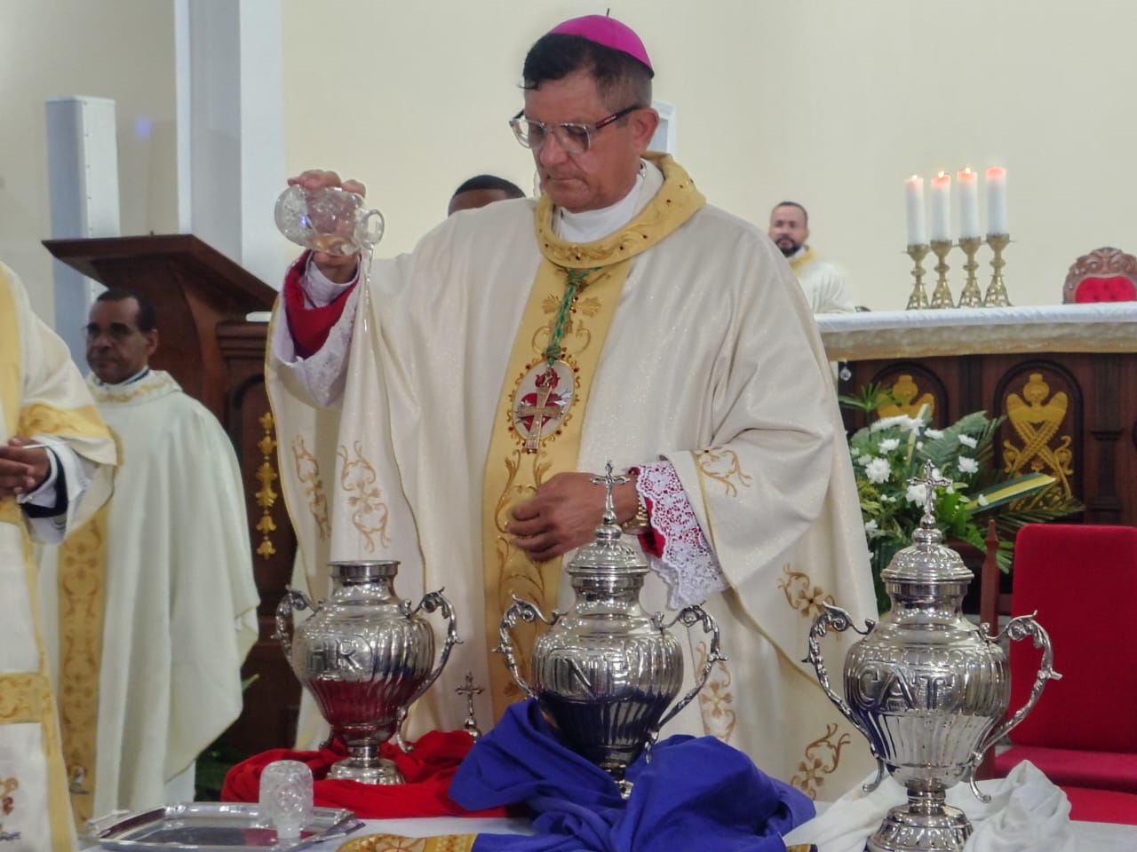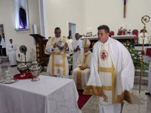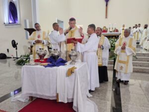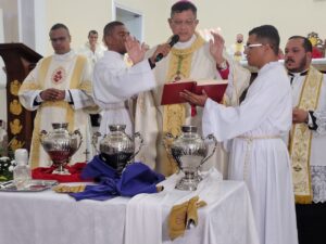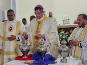 A celebração também foi marcada pela bênção dos santos óleos, que são utilizados ao longo do ano nos sacramentos do Batismo, da Crisma e da Unção dos Enfermos em todas as paróquias da diocese, que abrange 19 municípios do sul da Bahia.