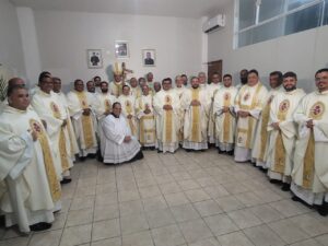 Em outro momento da reflexão, o bispo convidou os sacerdotes a manterem o olhar fixo em Cristo como caminho de fidelidade. “Fixar os olhos em Jesus é uma graça que nós devemos cultivar como sacerdotes. No fim do dia, é bom olhar para o Senhor e deixar que Ele contemple o nosso coração”, destacou, ao enfatizar a necessidade de um exame de consciência à luz do amor de Deus.