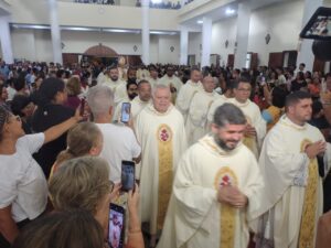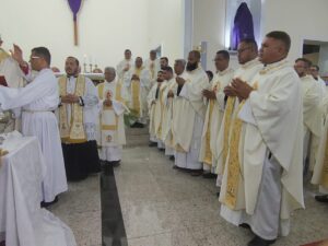 Ao dirigir-se ao clero, o bispo manifestou gratidão pelo trabalho pastoral desenvolvido nas comunidades da diocese. “Meu abraço e minha gratidão pela presença no nosso presbitério e pelo trabalho que os senhores desempenham nas nossas comunidades. Que esse trabalho se torne sempre mais profundo e fecundo”, declarou.