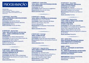 O evento faz parte do conjunto de atividades que compõem o novenário e a festa de Nossa Senhora das Graças, realizados desde o dia 18 e que seguem até 27 de novembro. Neste ano, a programação tem como tema “Peregrinos da Esperança. Confiantes na intercessão de Nossa Senhora, a primeira peregrina da esperança”.