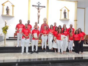 A Paróquia Santa Rita de Cássia, pertencente à Diocese de Itabuna, viveu um momento de grande significado espiritual na noite deste sábado, 8 de agosto. Treze adultos e jovens receberam o Sacramento da Confirmação, também conhecido como Crisma, durante celebração presidida pelo bispo diocesano, Dom Jailton Oliveira Lino, e concelebrada pelo pároco, frei Luciano Martins.
