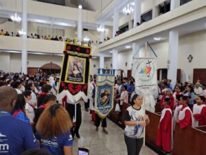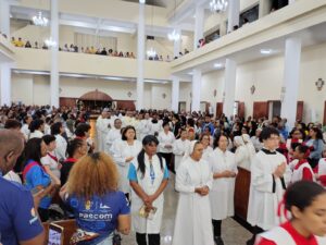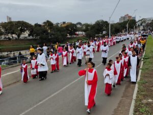 Outro ponto enfatizado na homilia foi o agradecimento pela presença dos sacerdotes, religiosos, religiosas, famílias e paróquias participantes da peregrinação. Em especial, destacou a pastoral familiar da diocese, que encerrou a Semana Nacional da Família. “Se a família está bem, a sociedade automaticamente estará bem também”, afirmou.