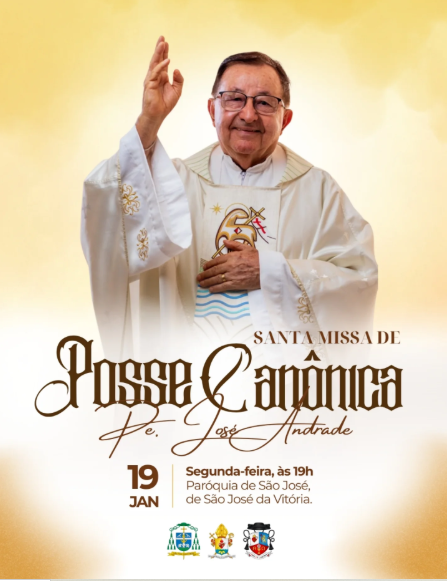 A Paróquia de São José, no município de São José da Vitória, se prepara para viver um momento significativo de fé e comunhão eclesial nesta segunda-feira, 19 de janeiro, com a celebração da Santa Missa com o Rito de Posse Canônica do padre José Andrade Paz como novo pároco.