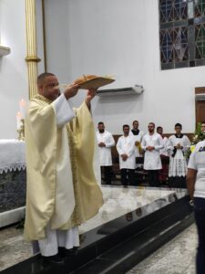O pároco também recordou a instituição do sacramento durante a Última Ceia e sua centralidade na vida da Igreja. “De modo especial, na Semana Santa, Cristo instituiu o sacramento da Eucaristia. Antes de passar pela cruz, Ele deixou este alimento para a sua Igreja, que somos nós. A Eucaristia é o alimento que mantém viva a Igreja. Há mais de dois mil anos a Igreja existe e, se não fosse por causa da Eucaristia, certamente não existiria mais”, destacou.