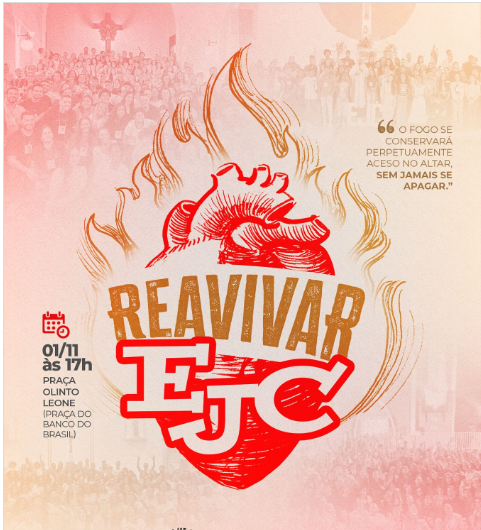 O movimento Encontro de Jovens com Cristo (EJC) das paróquias Mangabinha, Conceição, Jardim Primavera e São Caetano promoverá, no próximo dia 1º de novembro, o Reavivar EJC. A atividade acontecerá na Praça Olinto Leone, no centro de Itabuna (BA), a partir das 17h, reunindo jovens e comunidade para um momento de oração, louvor e fortalecimento da espiritualidade.
