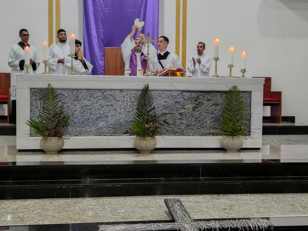 Na Paróquia Santa Rita de Cassia, a celebração penitencial teve início às 18h30, com adoração ao Santíssimo Sacramento, sendo presidida pelo pároco, o padre Frei Luciano Martins. Em seguida, às 19h, foi realizada a Santa Missa, reunindo fiéis em um momento de reflexão e preparação para o Tríduo Pascal.