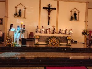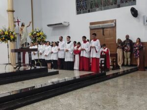 Na noite deste sábado, 4 de abril, o pároco da Paróquia Santa Rita de Cássia, Frei Luciano Martins, em Itabuna, no sul da Bahia, presidiu, às 19h, a solene Vigília Pascal na igreja matriz, concluindo o Tríduo Pascal. A celebração foi concelebrada pelo padre Idário, da Diocese de Eunápolis, no extremo sul baiano, reunindo fiéis para uma das liturgias mais importantes do calendário cristão.